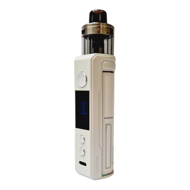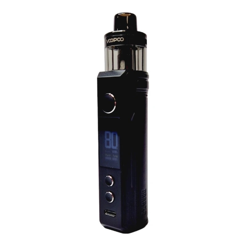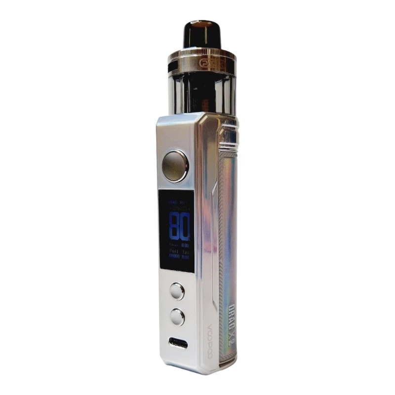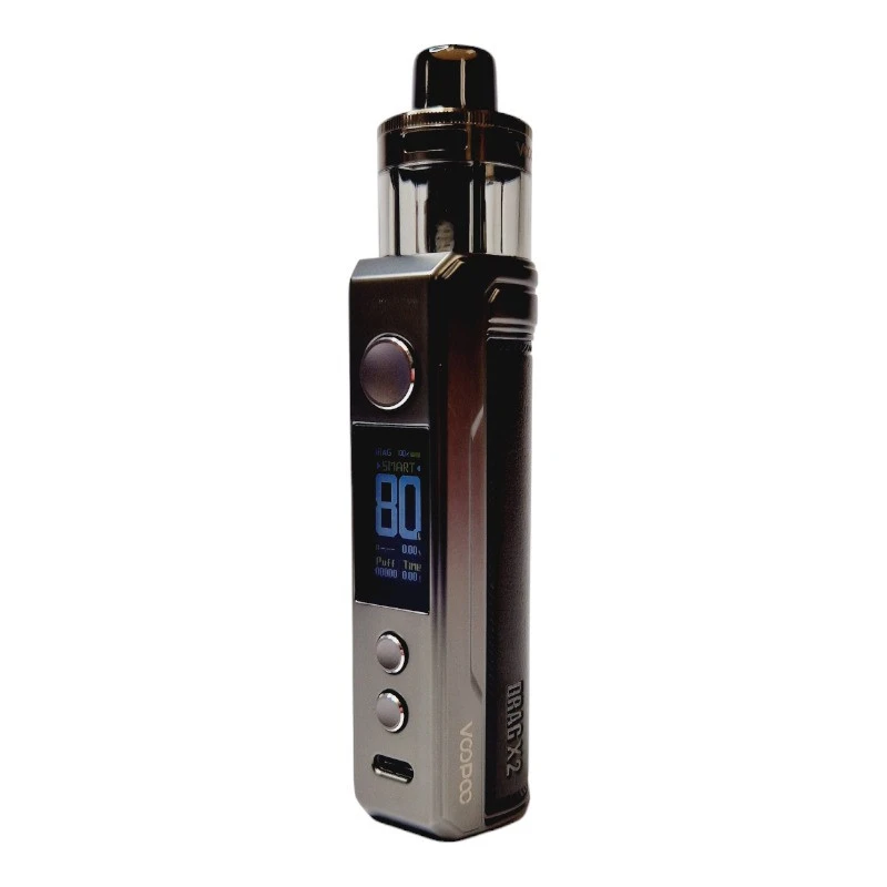 Le kit Drag X2 est également géré par le chipset Gene.TT 2.0 de Voopoo et peut donc délivrer 80W de puissance au maximum. Sur sa face avant, on retrouve un écran TFT de 0,96″ ainsi que deux boutons qui permettront d’effectuer les différents réglages et choisir entre les modes de fonctionnement : Smart / RBA / Eco.